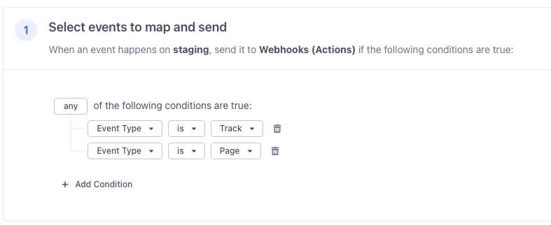 For our example, we know we want to count just Track and Page events, so that's what we select.