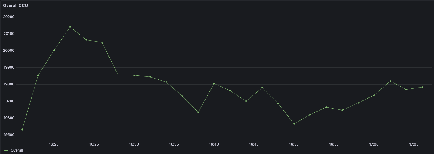 First, you'll want to add a second Query, basically the same as Overall CCU mentioned above.
