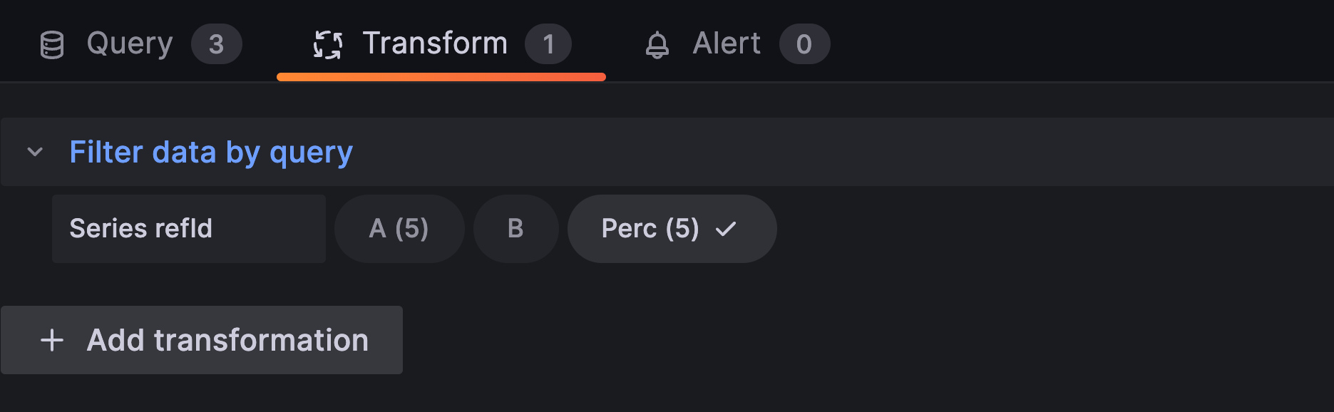 You'll notice now you have some extra series in your chart, to clean this up we utilize the Grafana Transformation to Filter data by Query and select only our Perc item.